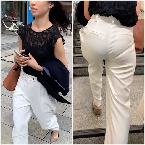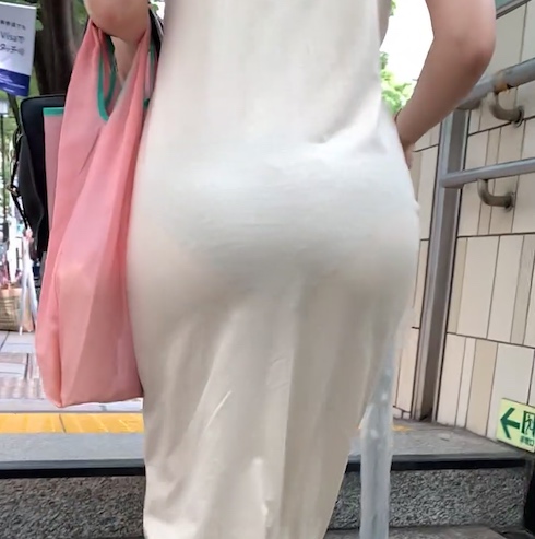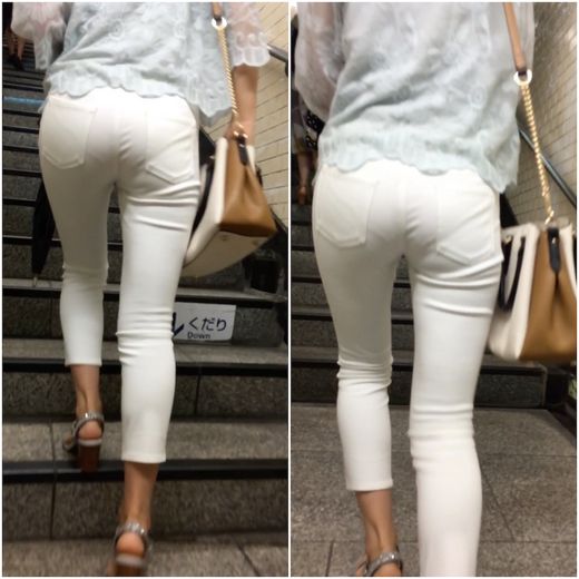 そんな彼女が魅せる着衣尻。 グラビアモデルの様なプロポーションに感嘆のため息。 着飾った姿のヒップラインは、衝撃を受けるイヤらしさ。 相当な薄さの生地感のパンツを履く。 そこで透けるパンティーラインと、柔らかそうなムチムチ尻肉が最高である。 階段終盤に魅せる、お尻を突き出す様に登る格好は、アイドル系美女らしからぬ格好で登る。