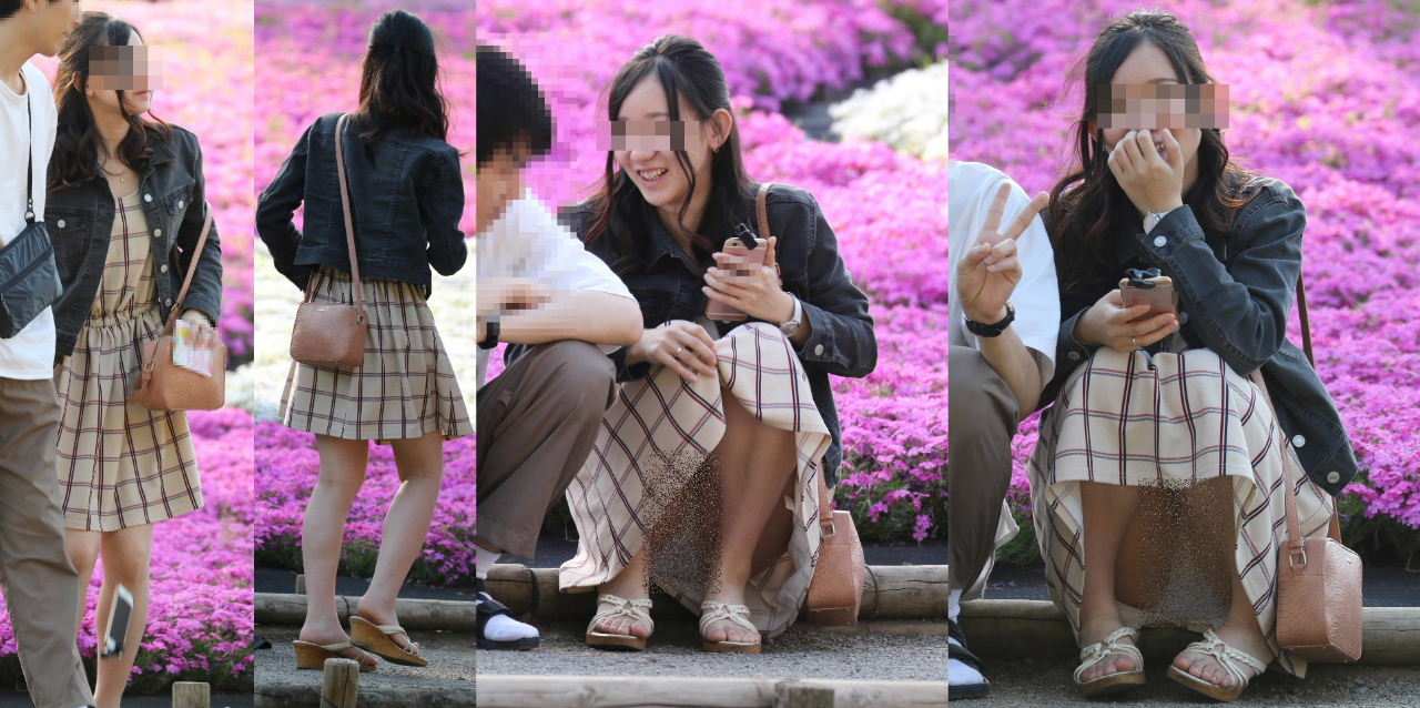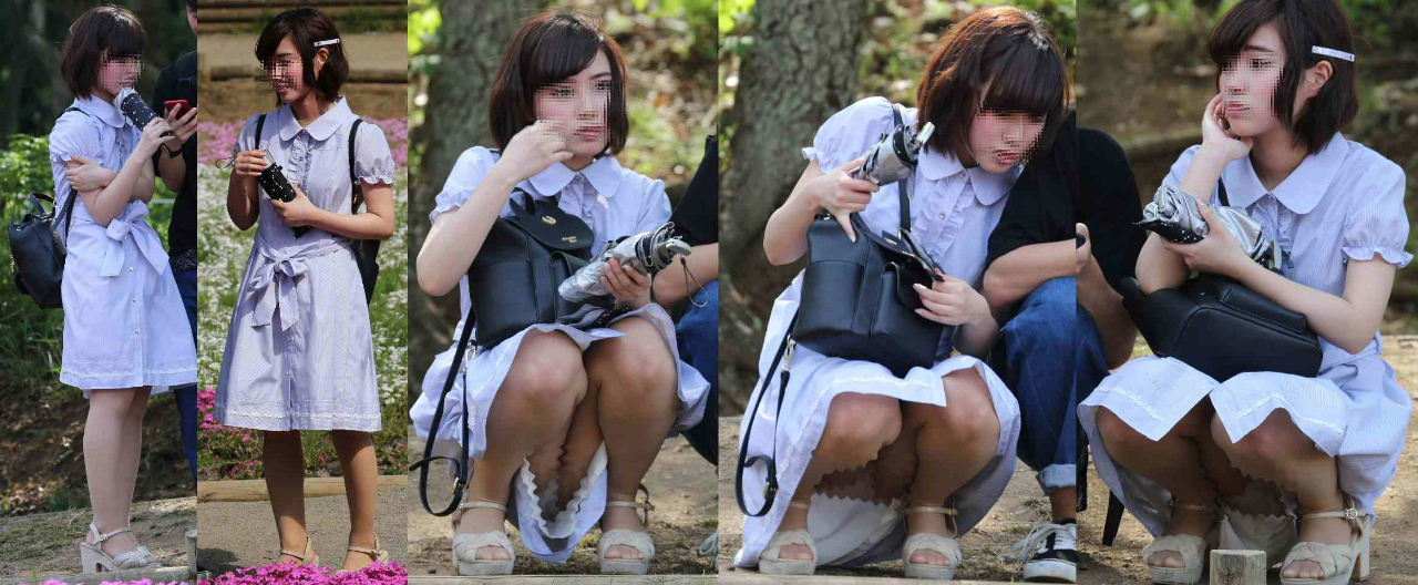 N羽*美脚JKの逆さカメラバレ睨み・・既