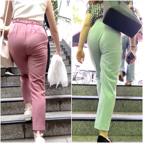 なんともいえないイヤらしいケツをフリフリさせ、歩き方・腰付きがエロく色気がムンムン! よ~く見ると下着が食い込んで卑猥なラインがクッキリあらわで、Tバックじゃないところに萌え!